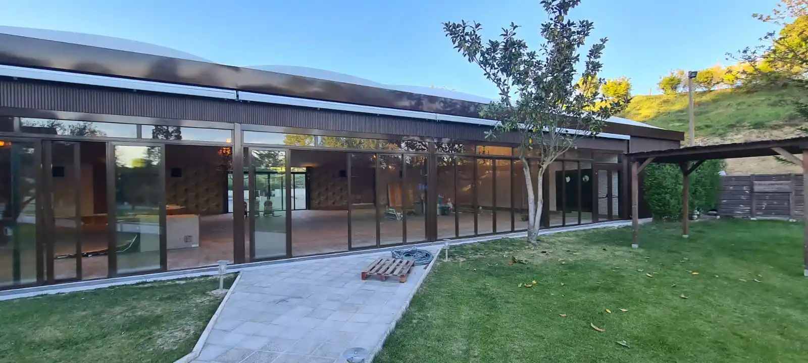 Desde el interior, el entorno forma parte del espacio: jardines, paisajes naturales o arquitectura exterior se integran visualmente en la experiencia. Además, el cristal permite un mejor control térmico, protección frente a la intemperie y una percepción de calidad superior.