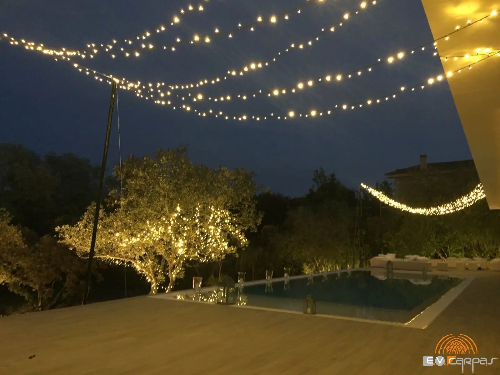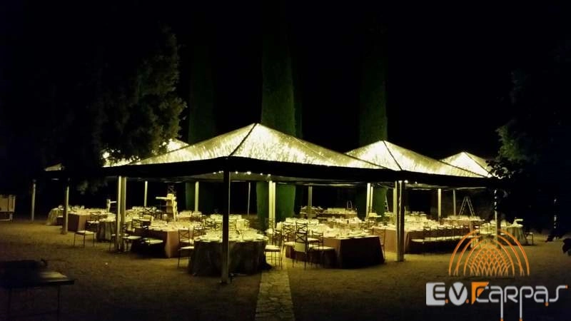En EV Carpas creamos espacios singulares sabiendo que la iluminación es un factor importante en todos los eventos, por ello disponemos de todo tipo de iluminación profesional, tiras de guirnaldas de microluces y distintas iluminaciones profesionales, tanto para carpas como para jardines para conseguir un espacio además de iluminado acogedor para todo tipo de eventos.